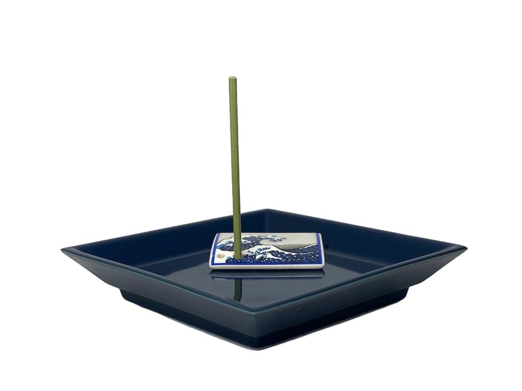 Japonský porcelánový talířek na vonné tyčinky - Tmavě modrý